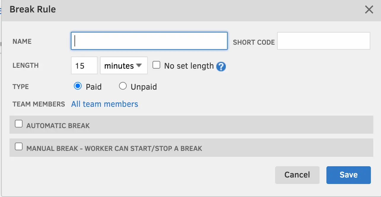 Break tracking allows custom rules for paid/unpaid and automatic/manual breaks. In my testing, automatic breaks worked flawlessly, the system inserted them mid-shift exactly as configured.